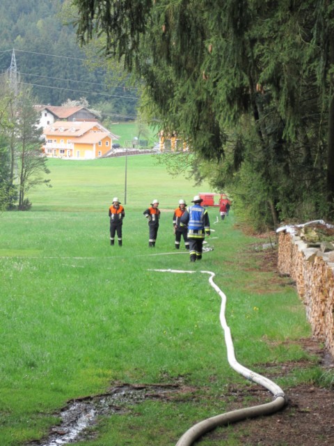 Die Wehren aus Moosbach, Tresdorf und Ruhmannsdorf bauten aus dem Weiher von Eberhard Preiß bei einer Förderstrecke von 430 Meter und einem Höhenuntschied von ca. 15 Meter eine Leitung auf. Um 9,17 Uhr hieß es auch von da „Wasser marsch“. Im Verlauf der Übung wurden von dort ca. 25 Kubikmeter Wasser entnommen. Aus den drei Strahlrohren am Brandobjekt wurden pro Minute ca. 1200 Liter Wasser abgegeben.