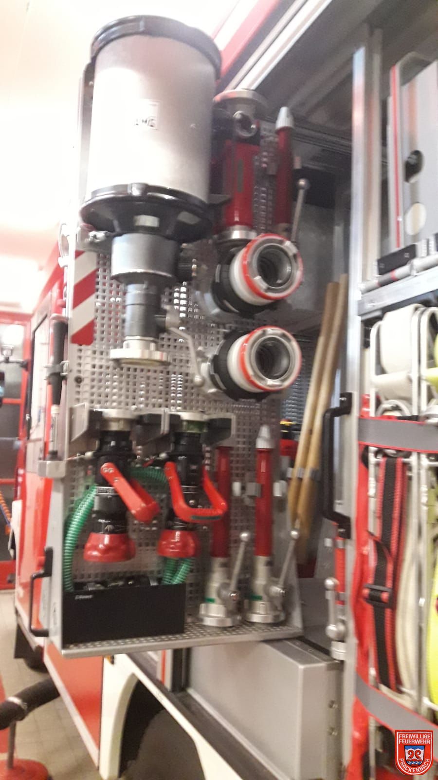 Insgesamt wurden über eine Sammelbestellung der 14 ILE-Donau-Wald-Gemeinden 85 Systemtrenner angeschafft. Die Feuerwehr Prackenbach verfügt über vier Stück. Nach Normbeladung wurden jeweils zwei in jedem Löschgruppenfahrzeug verlastet.