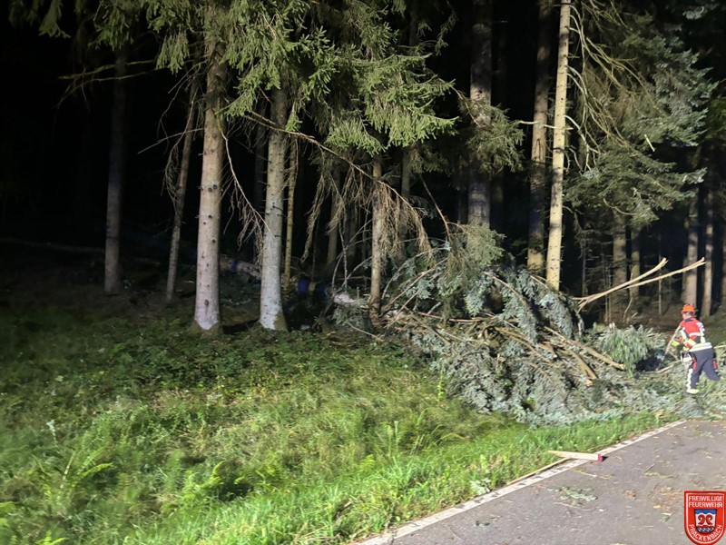 Mit dem Stichwort "Baum / Ast auf Fahrbahn" wurden wir um 22:10 Uhr durch die ILS Straubing zur Herzogsäge nach Hagengrub gerufen.