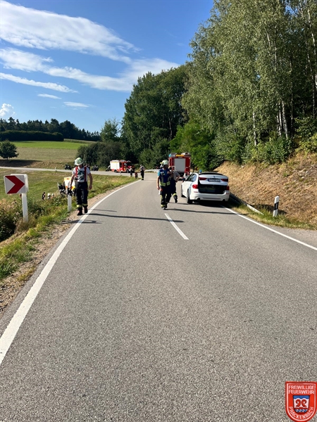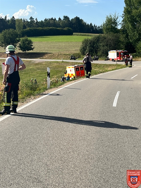 Von der Leitstelle Straubing werden die Feuerwehren Moosbach und Prackenbach mit dem Einsatzstichwort: ,,VU mit Motorrad ``alarmiert.