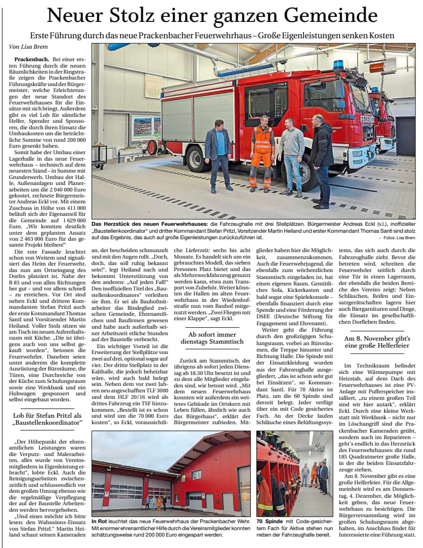 Zeitungsberichte über unser neues Gerätehaus vom 03.11.2025
